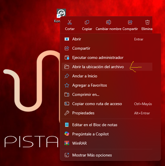 - Copiar el archivo en la ubicación en donde tenemos instalado el Kontakt. Si no sabemos donde localizarlo, hacemos lo siguiente: Botón derecho sobre el ícono de Kontakt y seleccionar "Abrir la ubicación del archivo". Una vez dentro de la carpeta, solo nos resta copiar el dll